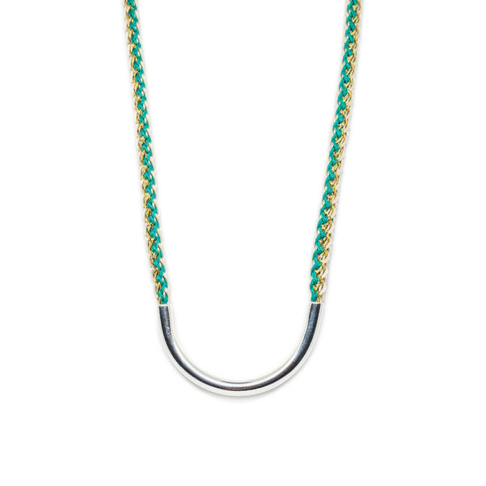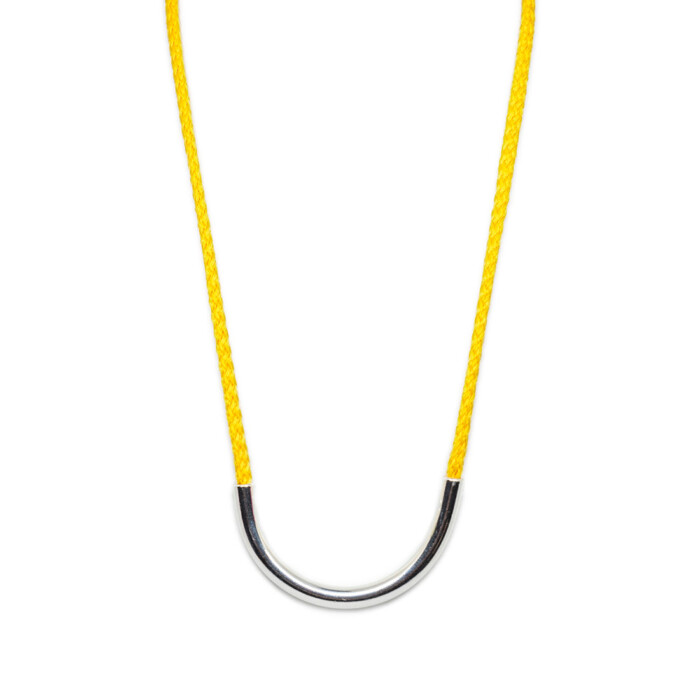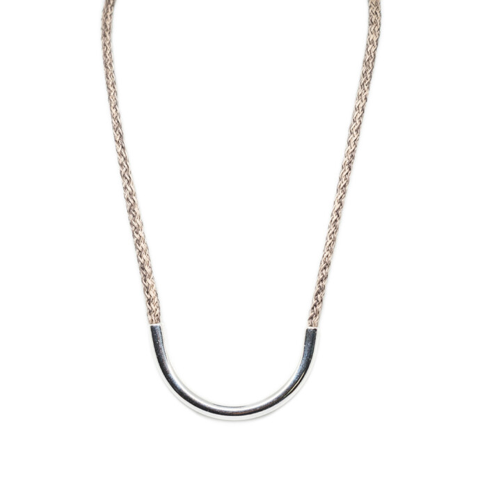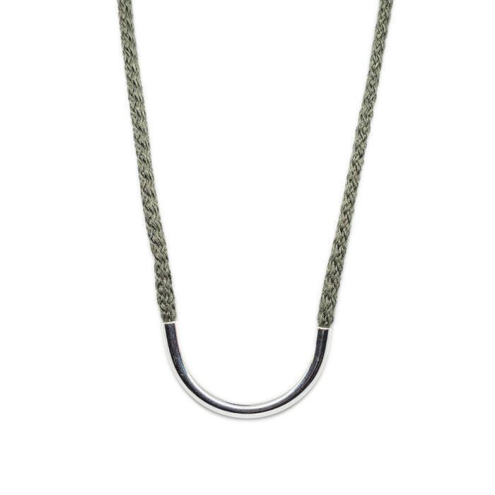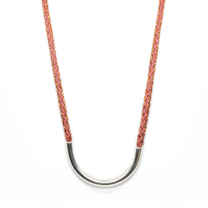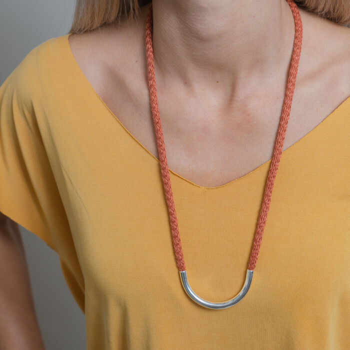 Dioni is a unique necklace. Handmade with love with a cord that comes in various colors combined with bronze, or a silver-plated metal. Dioni can also be mixed and matched with other necklaces from the MOMAD necklace collection.