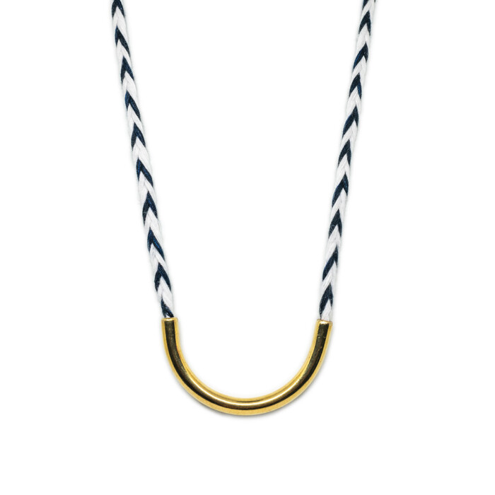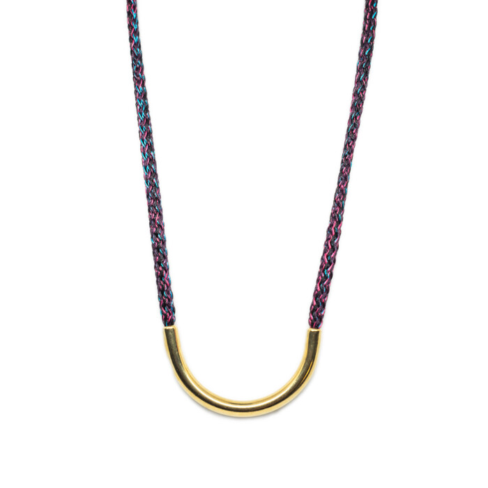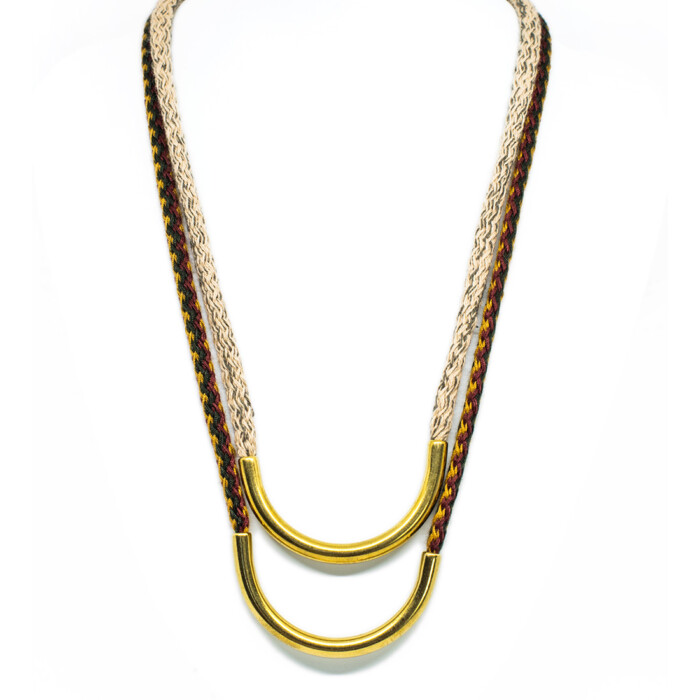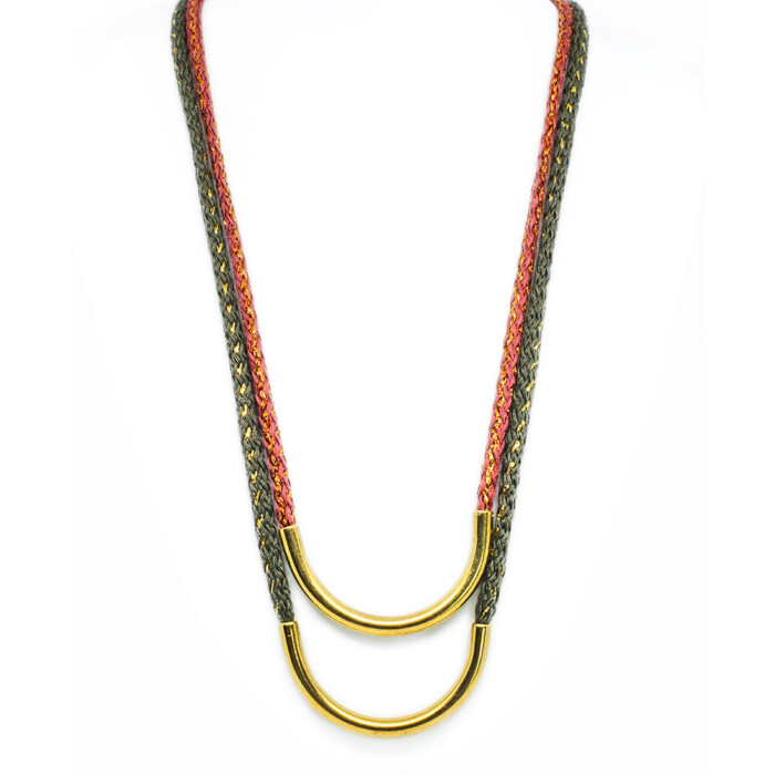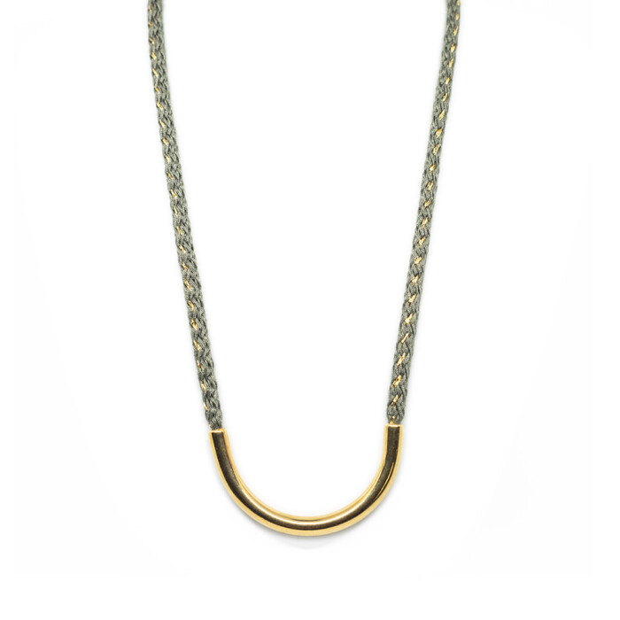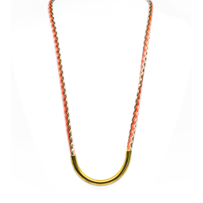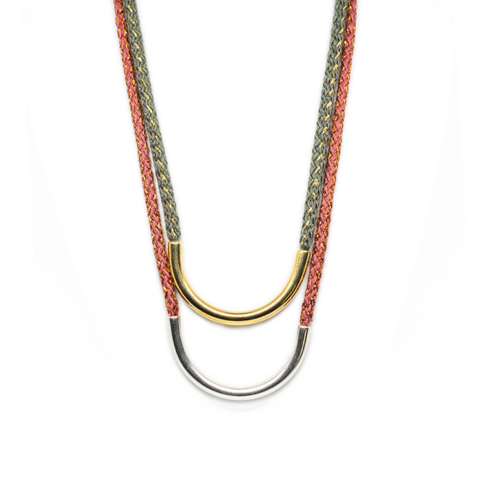 Dioni is a unique necklace. Handmade with love with a cord that comes in various colors combined with bronze, or a silver-plated metal. Dioni can also be mixed and matched with other necklaces from the MOMAD necklace collection.