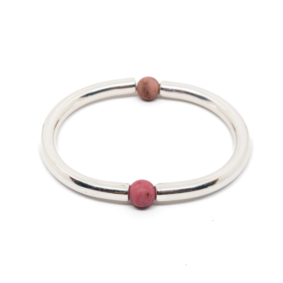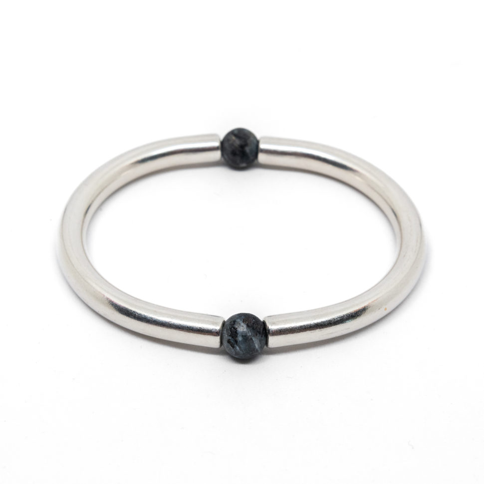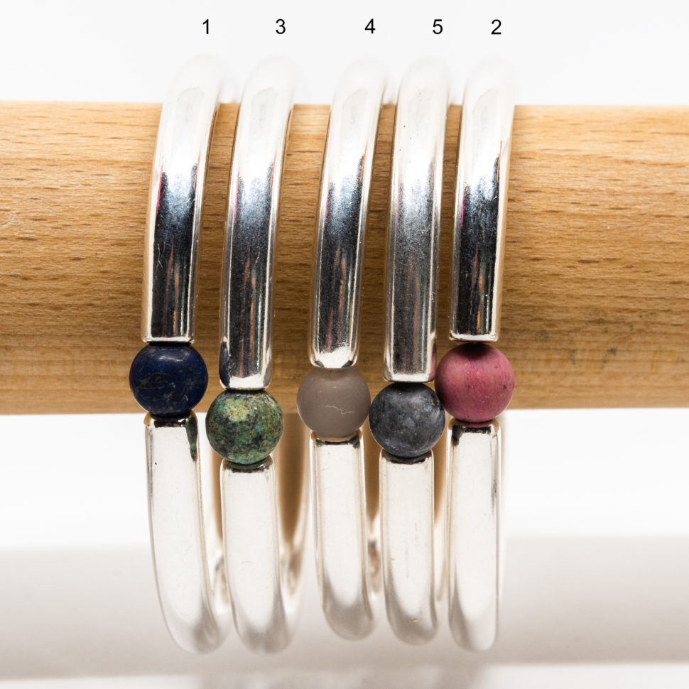 Material : natural stones, silver plated bronze metal, elastic silicone