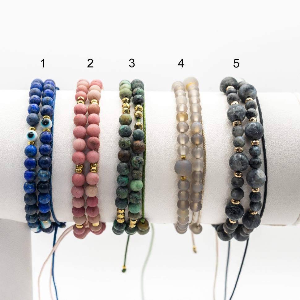 Material : stainless steel, natural stones, cotton cord