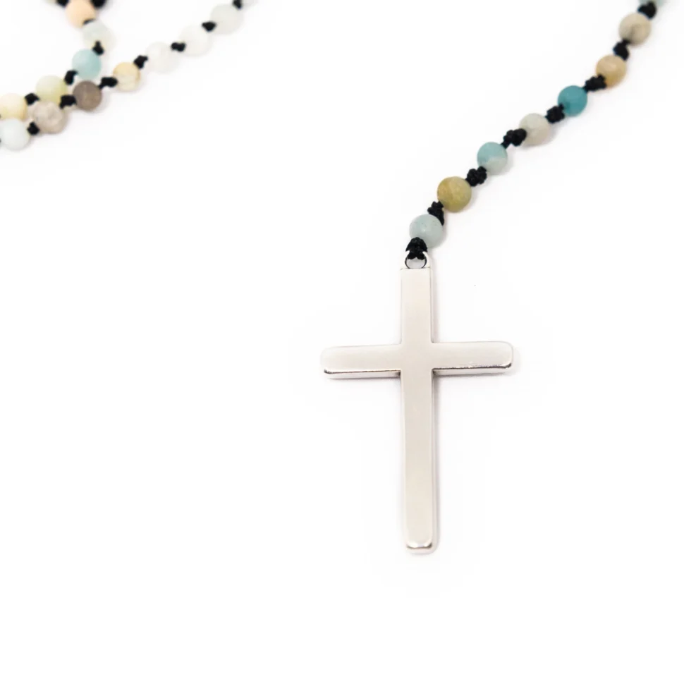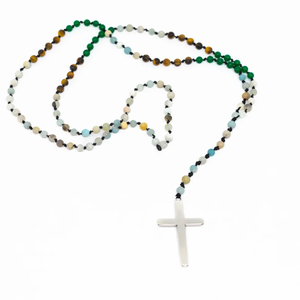 Material : amazonite,wood and green agate stones, cotton cord, silver plated element