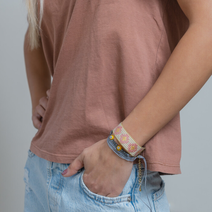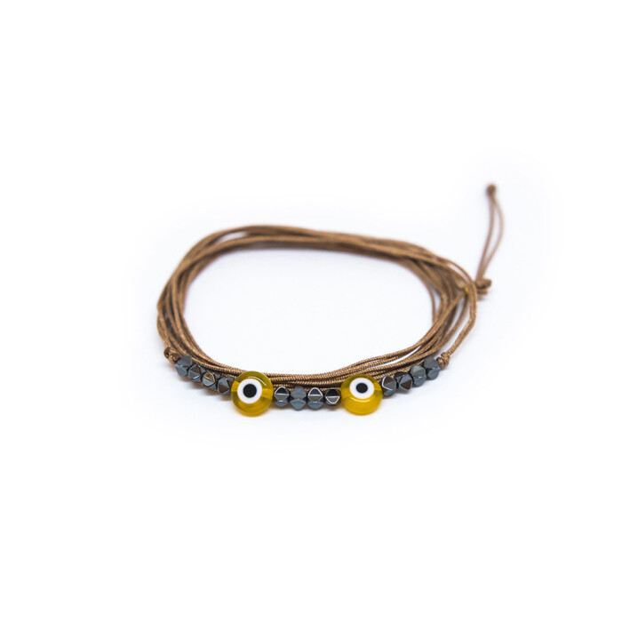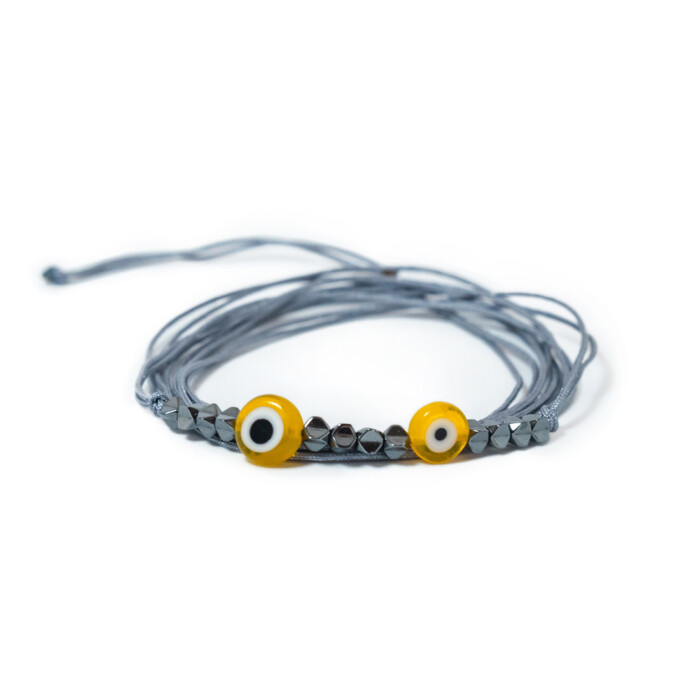 Nefeli is a minimal adjustable bracelet that can be worn in 3 different ways. As a bracelet, as a necklace and as an ankle bracelet. Handmade with love with hemitate, crystals and a cotton cord which is available in 2 colors. It can be mixed and matched with MEGAKLO, NIOVI and PERSI.