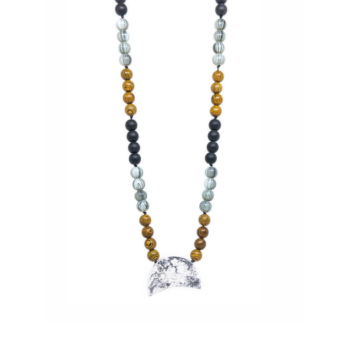 Material : matt black stones, wood, crystal, clay, cotton cord