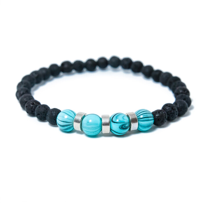 Material : lava, beads, silver plated elements, elastic silicone