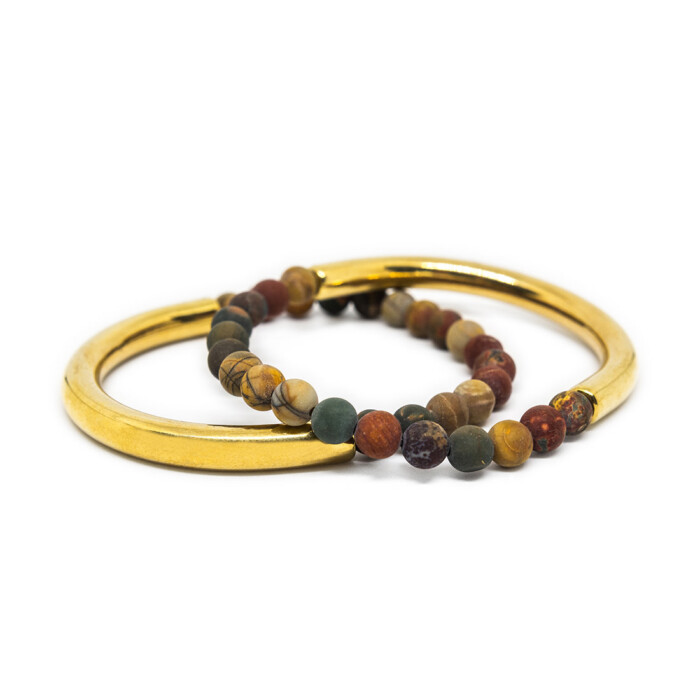 Thetis a beautiful 2 set bracelet can be worn all day long. Handmade with love with matte natural stones (pink zebra quartz, Picasso quartz, watermelon quartz, vintage red jasper, turquoise, yellow agate, vintage green agate, amazonite) silver plated and elastic silicone that is resilient. It comes in 8 colors. Thetis can also be mixed and matched with DIONI and IOLI.