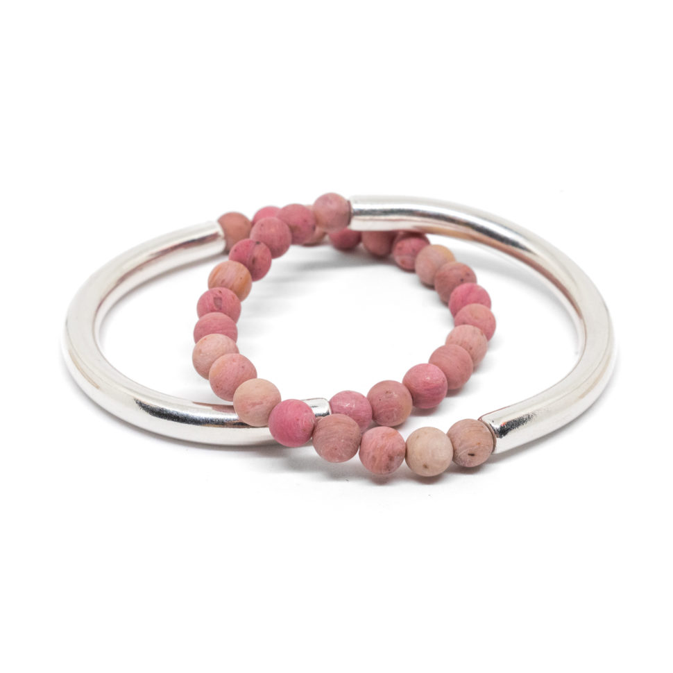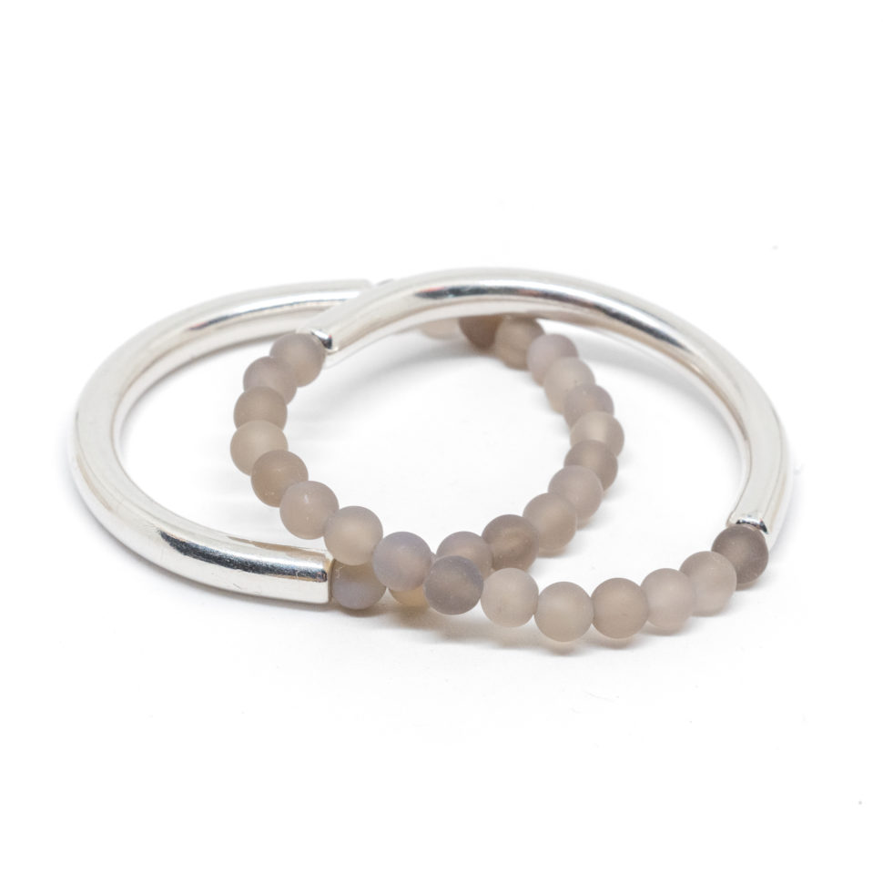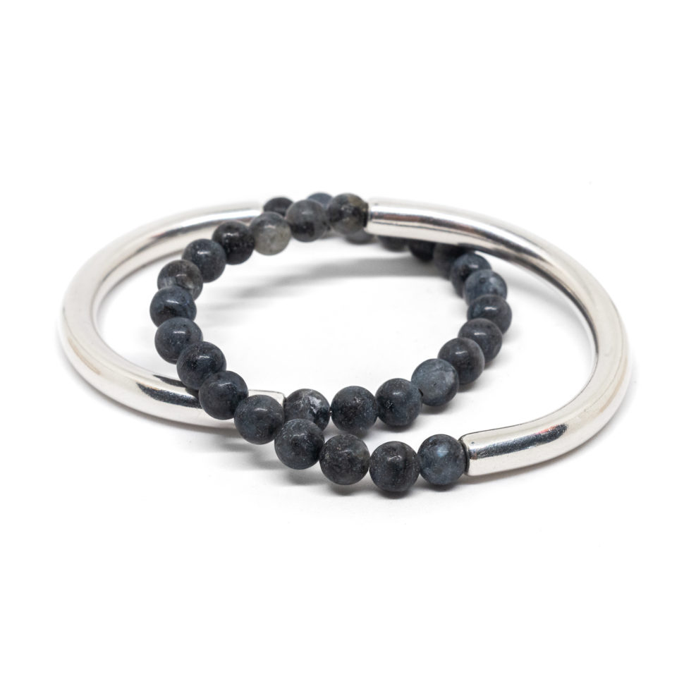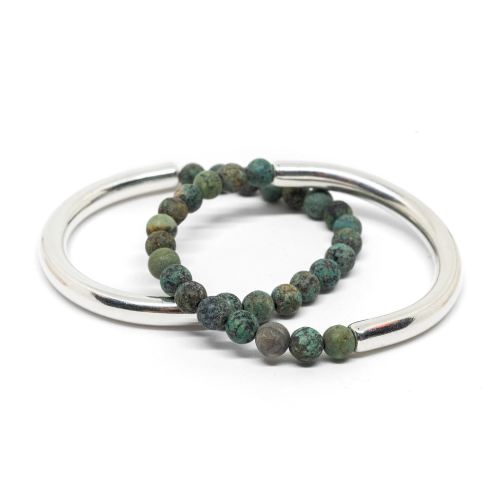 Thetis a beautiful 2 set bracelet can be worn all day long. Handmade with love with matte natural stones (pink zebra quartz, Picasso quartz, watermelon quartz, vintage red jasper, turquoise, yellow agate, vintage green agate, amazonite) silver plated and elastic silicone that is resilient. It comes in 8 colors. Thetis can also be mixed and matched with DIONI and IOLI.